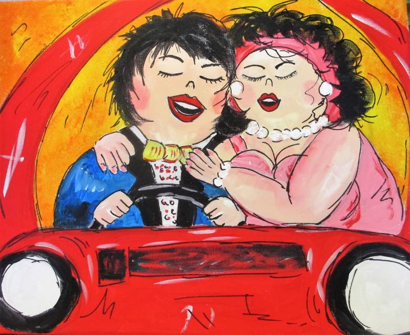 DAMES VISSEN VERLIEFD IN AUTO DAME MET HOED